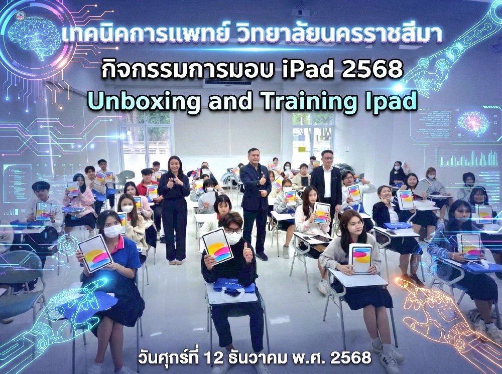 สาขาวิชาเทคนิคการแพทย์ได้จัดกิจกรรมส่งมอบ iPad ให้แก่นักศึกษาเทคนิคการแพทย์ชั้นปีที่ 1 พร้อมทั้งจัดการอบรมการใช้งานเบื้องต้น ประจำปีการศึกษา 2568