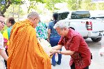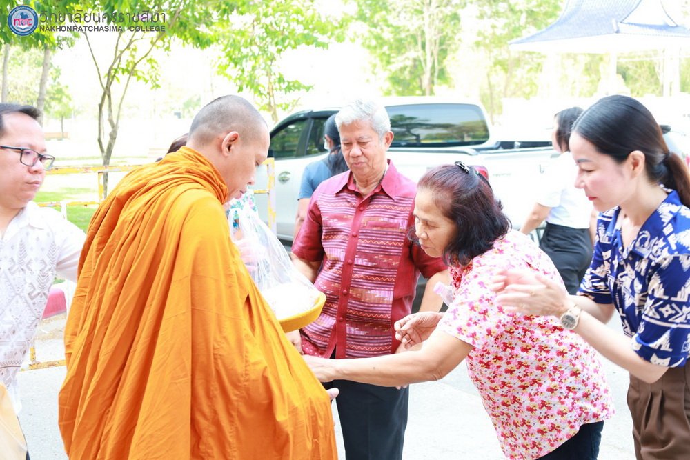 : รองศาสตราจารย์ ดร.วิภาส ทองสุทธิ์ อธิการบดี พร้อมด้วยคณะผู้บริหาร คณาจารย์ และเจ้าหน้าที่วิทยาลัยนครราชสีมา ร่วมทำบุญใส่บาตรพระสงฆ์ 1 รูปที่วิทยาลัยนครราชสีมา