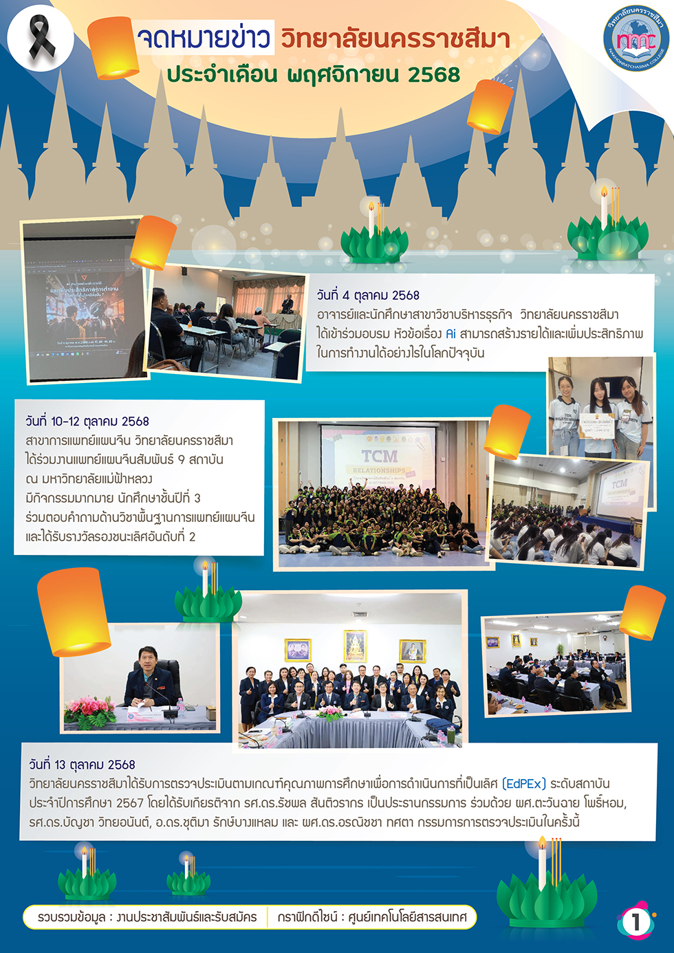 วนม. อนุรักษ์ภาษาไทย เมื่อวันพฤหัสบดีที่ 27 พฤศจิกายน พ.ศ. 2568 สำนักวิทยบริการ จัดโครงการอนุรักษ์ภาษาไทย โดยได้รับเกียรติจาก ผู้ช่วยศาสตราจารย์ ดร.พัฒน์ศิณ สำเริงรัมย์ รองอธิการบดีฝ่ายบริหาร เป็นประธานเปิดงาน ผู้ช่วยศาสตราจารย์ ดร.คงศักดิ์ สังฆมานนท์ ผู้อำนวยการศูนย์วิท |