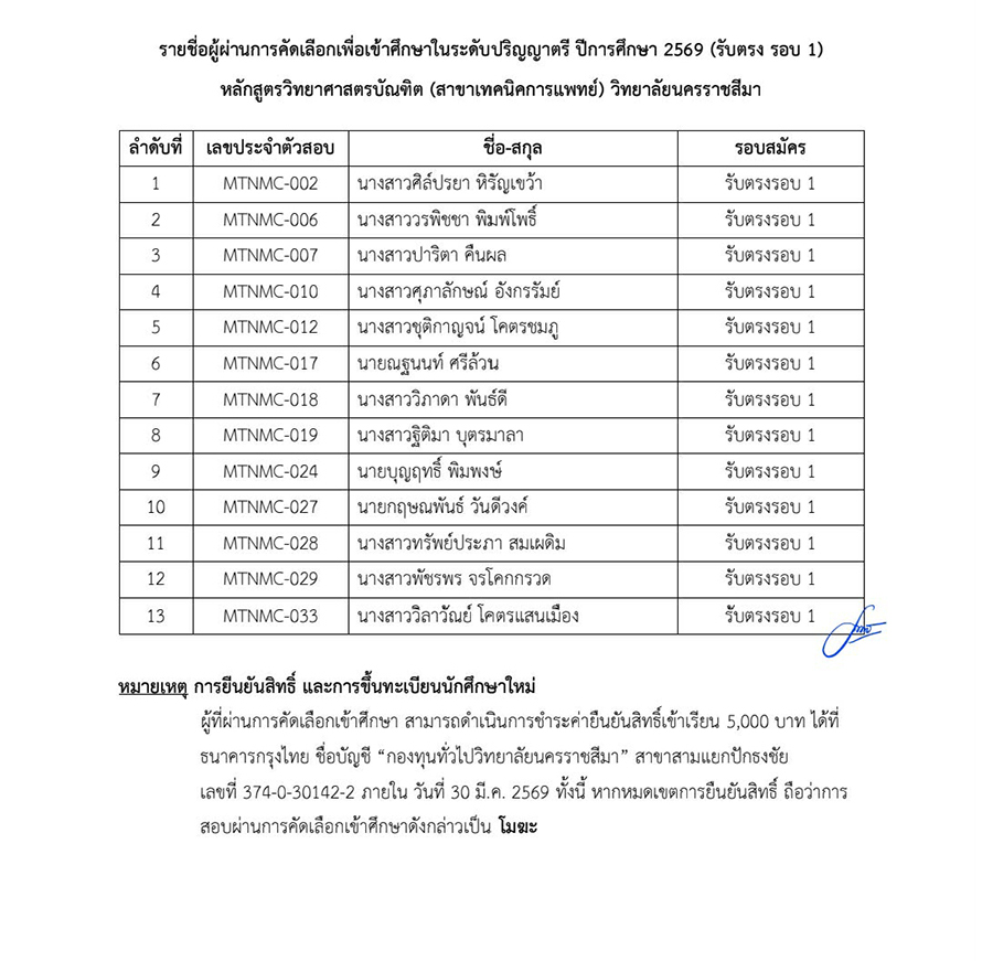 นักศึกษาชั้นปีที่ 1 รายใหม่ ทำการเปิดบัญชีธนาคารกรุงไทย (ที่วิทยาลัยนครราสีมา)